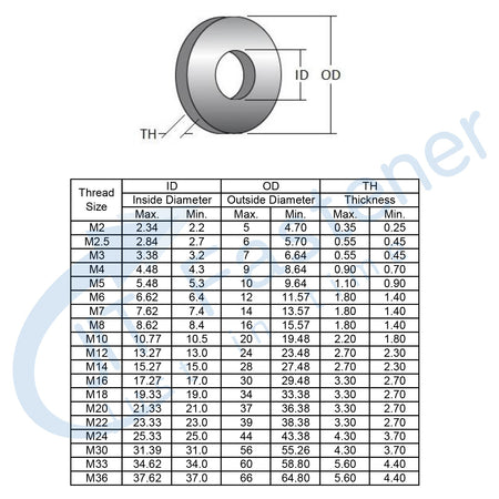 These general-use flat washers are placed under the head of a bolt or nut to create a smooth bearing surface and distribute the load over a wider area.