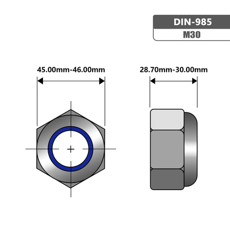 M30-3.5 Nylon-Insert LockNut 304 Stainless Steel DIN985 (60pcs/Pkg)